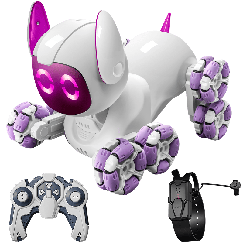 不仅如此,这款玩具还拥有炫酷的LED亮眼表情和灯光效果,能够在夜晚营造出梦幻的氛围。孩子们可以通过手柄遥控或手势控制,随心所欲地指挥这只机器狗,让它执行各种有趣的动作,甚至进行八轮特技表演,带来无穷的娱乐体验。